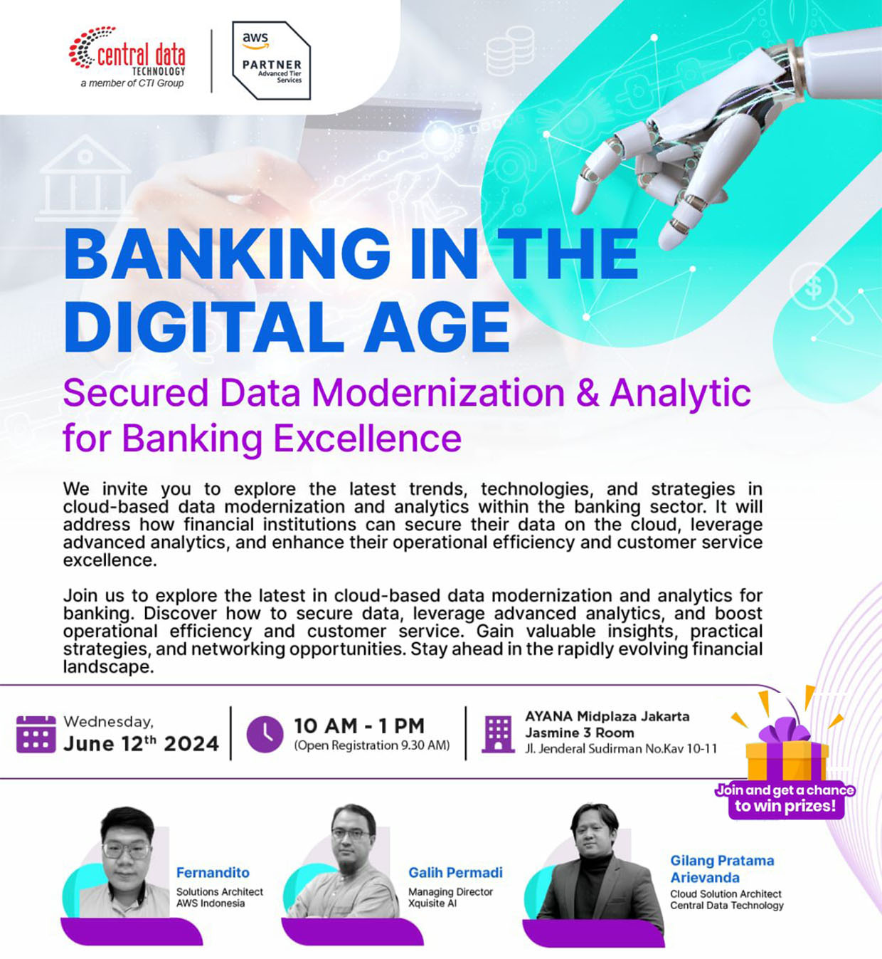 | 11.00 - 11.45 | Modernization DWH & Data Science workload & BI Analytic use case (Credit Scoring, Lead Generation) Galih Permadi, Managing Director - Xquisite Al |